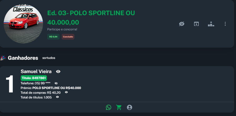 Sorteio: POLO SPORTLINE OU 40.000,00