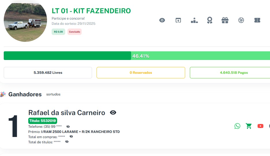 Premio Principal: I/RAM 2500 LARAMIE + R/2K RANCHEIRO STD