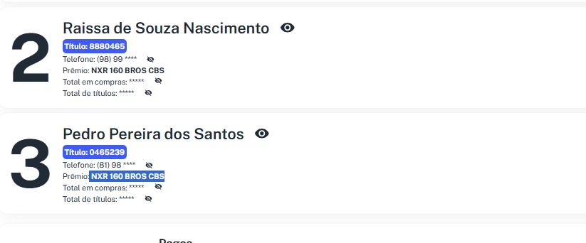 Prêmio: NXR 160 BROS CBS