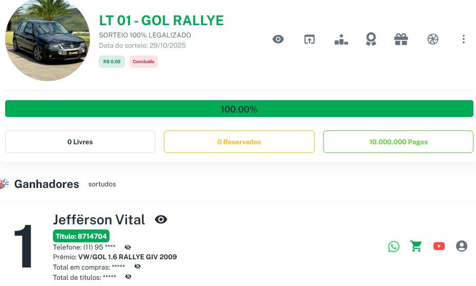Premio Principal: VW/GOL 1.6 RALLYE GIV 2009