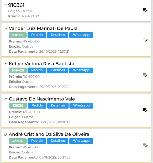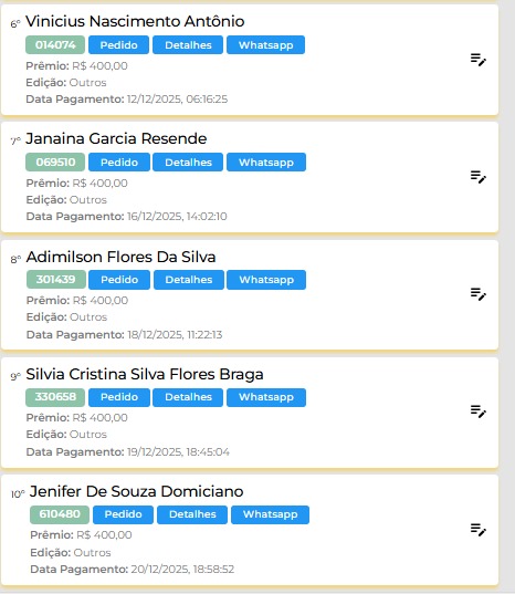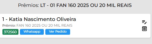 Premio Principal: FAN 160 2025 OU 20 MIL REAIS