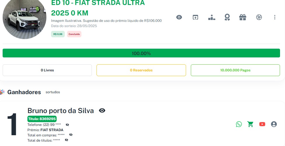 Premio Principal: FIAT STRADA 2025 OU 106.000,00