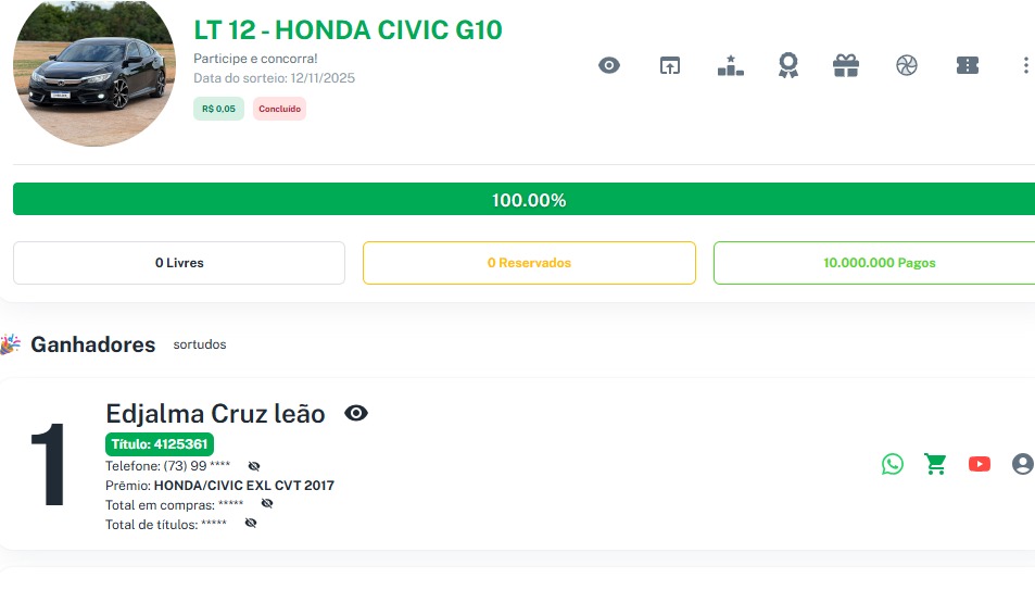 Premio Principal: HONDA/CIVIC EXL CVT 2017