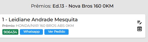 Premio Principal: HONDA/NXR 160 BROS ABS 0KM OU R$24.000,00