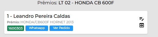 Prêmio: HONDA/CB600F HORNET 2013