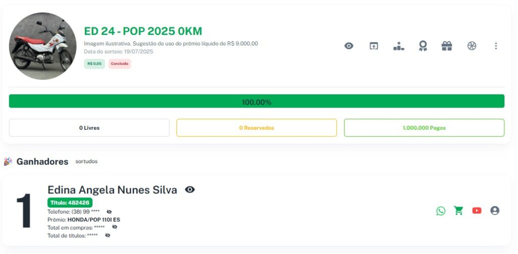 Premio Principal: HONDA/POP 110I ES OU 9.000,00