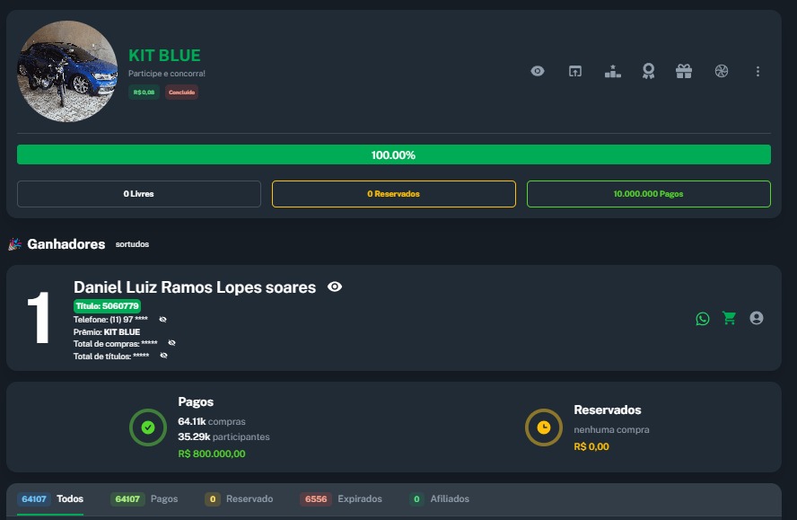 Prêmio Principal: Honda cg 160 fan/saveiro cd cross ou 120.000,00