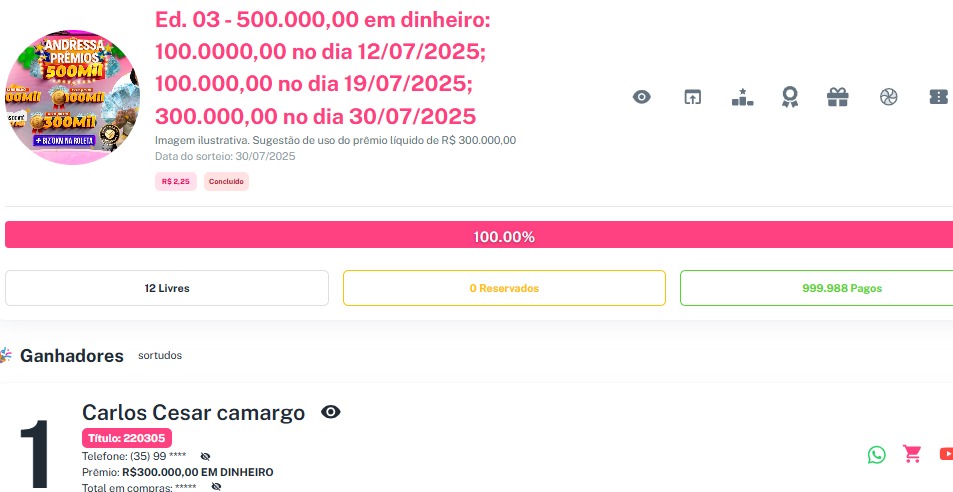 Prêmio: 300.000,00 EM DINHEIRO