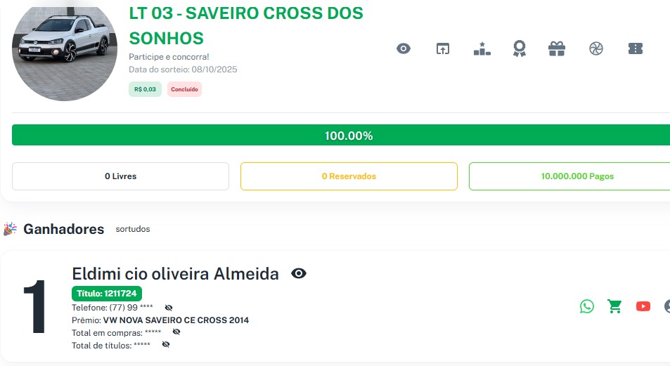Premio Principal: VW NOVA SAVEIRO CE CROSS 2014