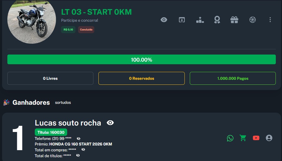 Premio Principal: HONDA CG 160 START 2026 0KM