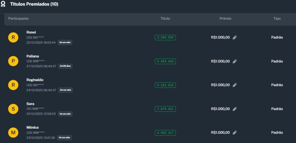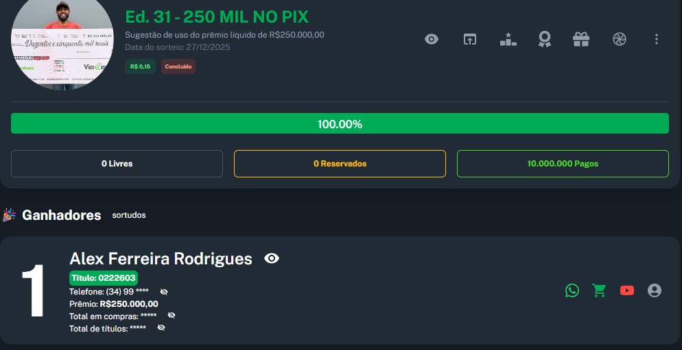 Premio Principal: R$250.000,00