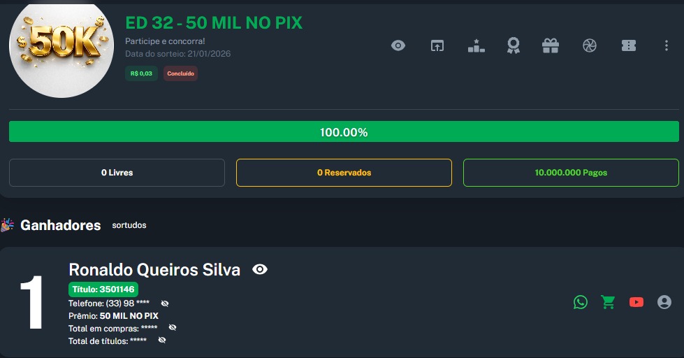 Prêmio: 50 MIL NO PIX