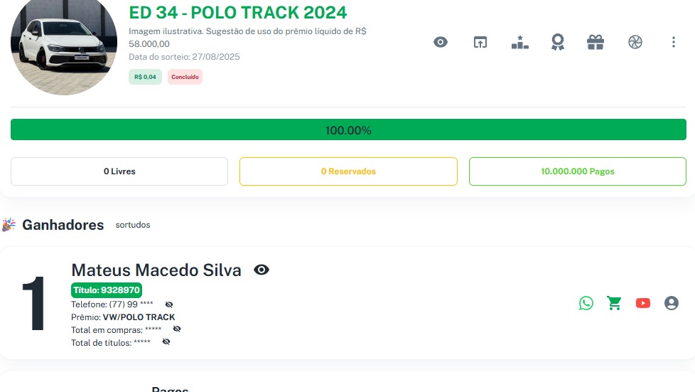 Premio Principal: VW/POLO TRACK MA, 2024 OU 58.000,00