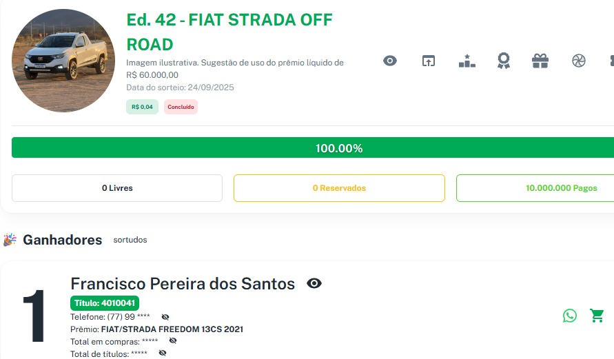 Prêmio: FIAT/STRADA FREEDOM 13CS 2021
