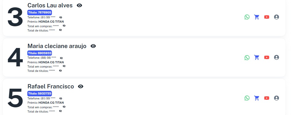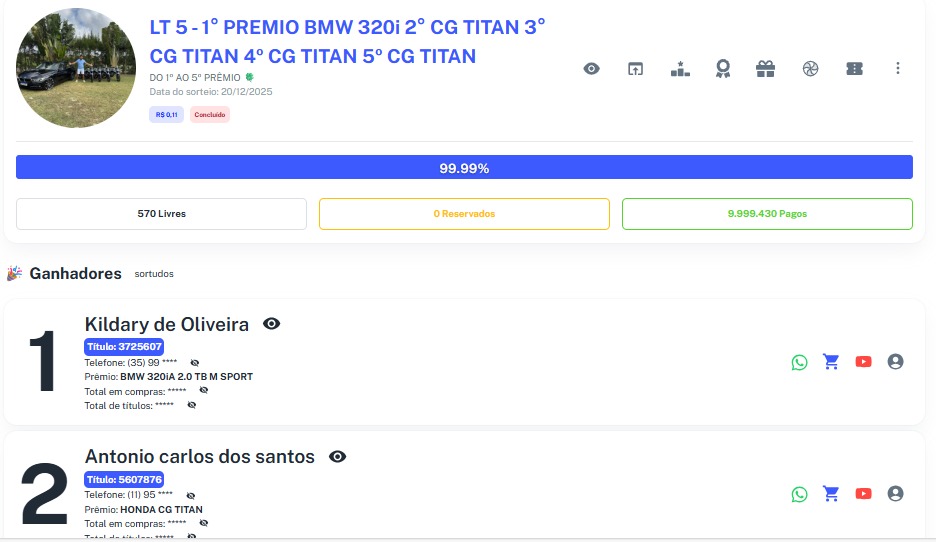LT 5 - 1° PREMIO BMW 320i 2° CG TITAN 3° CG TITAN 4º CG TITAN 5º CG TITAN