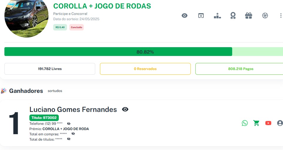 NOME DO PRÊMIO: COROLLA + JOGO DE RODAS